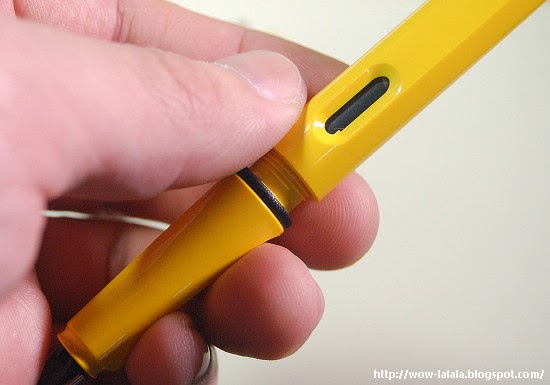 筆桿上的洞洞設計,可看到內部墨水量喔。當透光時即可歡呼,可以裝新墨水了~唷呼~